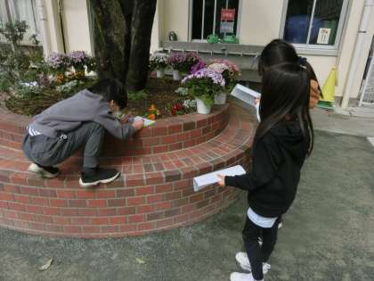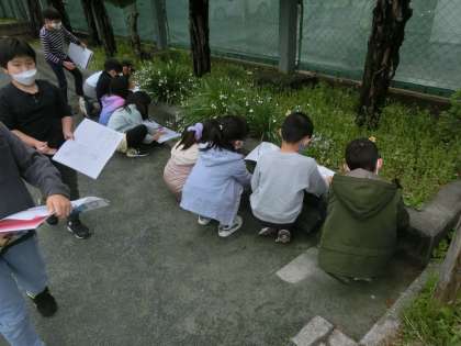 校庭の生き物の観察をしていました。