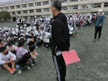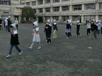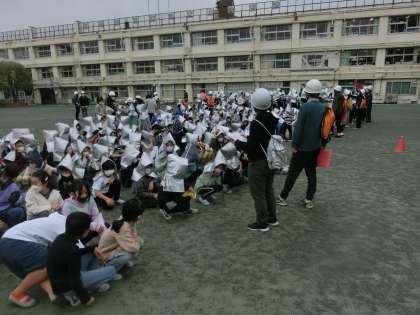 校庭への避難では、