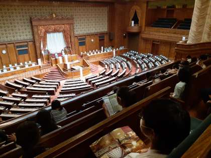 参議院議場では、傍聴席に座らせていただき、じっくり説明を聞かせていただきました。