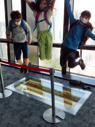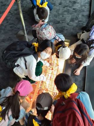 愛情いっぱいのお弁当で、お腹が満たされた6年生、東京タワーの展望室から360度見える、東京のビル群や、その先にキラキラ水面が輝く東京湾に歓声をあげていました。