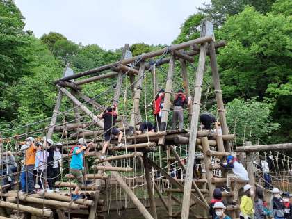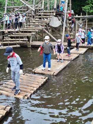 集合場所を確認すると、蜘蛛の子を散らすよう、それぞれのアスレチックに向かって行きました。