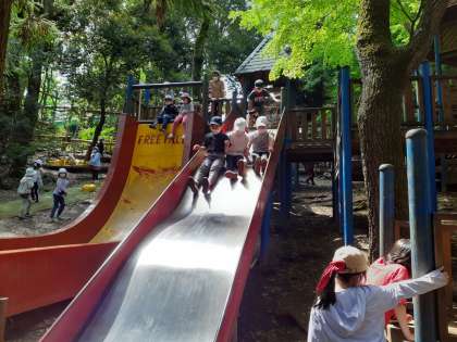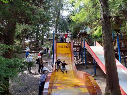 お弁当を美味しくいただいた4年生。午後も1時半の集合時間まで、おかわりアスレチック。