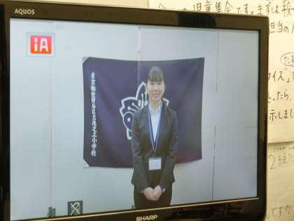 全校でのあいさつの後、3年生の教室で自己紹介。