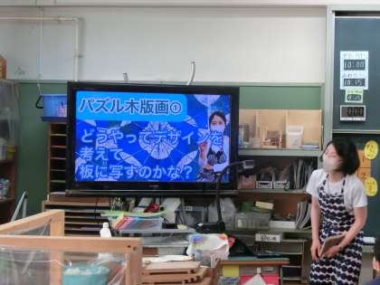 今5年生は、図工で「パズル木版画」に取り組んでいます。