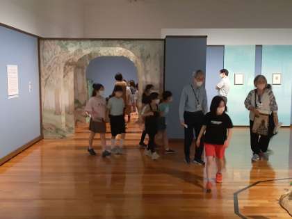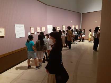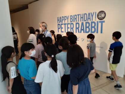 4年生、世田谷区の連合行事で、世田谷美術館に来ています。美術館では、ピーターラビット展の開催中。さっそく、ボランティアナビゲーターの方々に案内していただきながら、ピーターラビット展を見せていただいています。まだ、開館前ということで、池之上小学校の子どもたちで貸切状態!