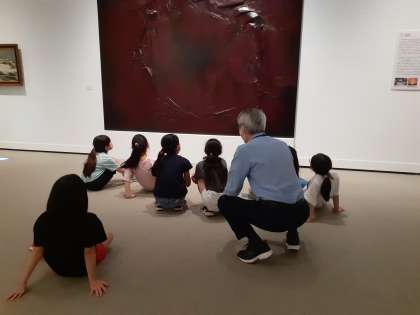 床に腰かけて見せていただいたら、じっくり説明していただいたりと、作品鑑賞を楽しんでいます。
