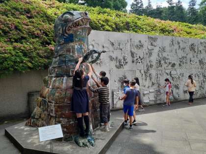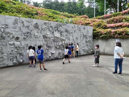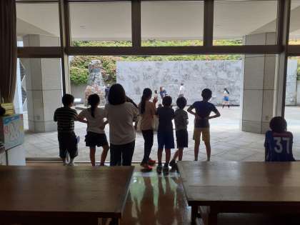 世田谷美術館の企画展示、常設展示の他に、4年生は、地下も案内しいただきました。ピロティの子どもたちが創った恐竜に触れたり、教室内に入らせていただりと、美術鑑賞教室ならではの見学を満喫していました。