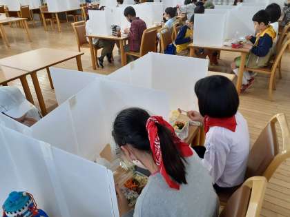 ビレッジ前の広場で、お弁当をいただく予定でしたが、