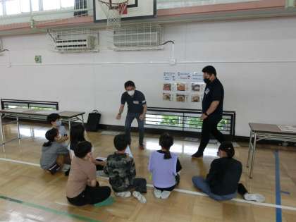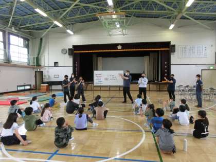 体育館でクラスごとに体験活動を行いました。