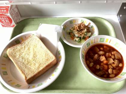 6月8日の給食は、シュガーバタートースト、ポークビーンズ、ごぼうチップサラダ、牛乳です。掲載しておりませんでした。