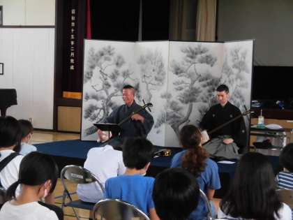 本條先生の「日本の子供達が邦楽にふれる機会を増やしたい」という想いから。今回三味線の演奏を聴く機会をいただきました。