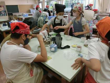 5年2組 家庭科、調理実習「お茶を淹れよう」