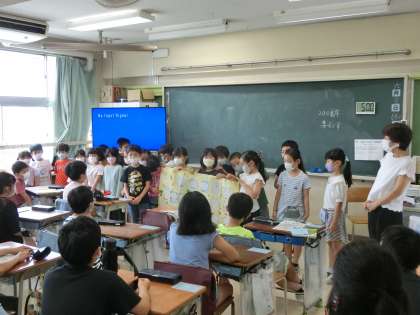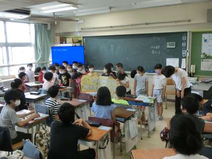 そこで、1、2年生は上級生が測定のお手伝いをしています。