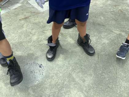 校庭では、安全のために使われている靴や