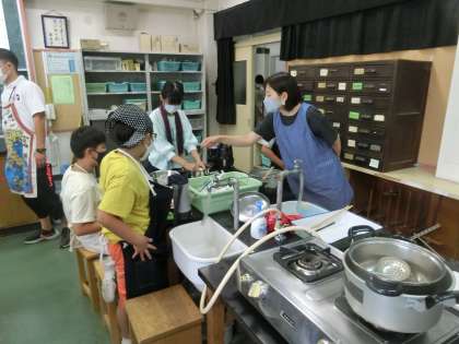 5年生 家庭科 調理実習「ゆで卵とゆで野菜」