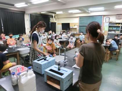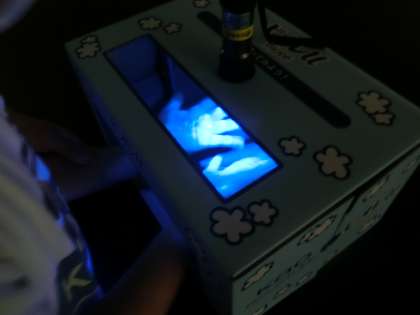 まず、手のひらに試薬(蛍光塗料)を塗ります。