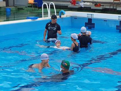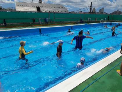 少し多めに水慣れをし、後半は、今の泳力を確かめる検定をしました。