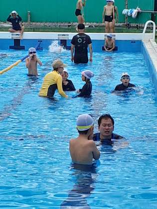 水慣れ後は、お宝当て宝さがし!水中のお宝をゲットした中から、本当のお宝を告げられ、大喜び。