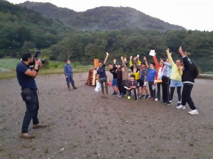 キャンプファイヤー場でもパチリと、カメラマンの浅川さんに、写真を撮っていただきました。