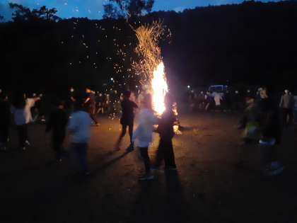 子どもたちは、ファイヤーを囲み、ダンスをしたり、