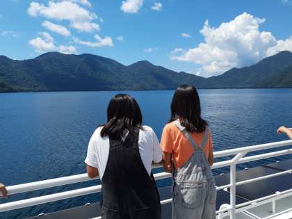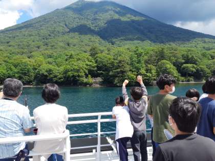 子どもたちは、中禅寺湖クルーズを満喫しているようです。