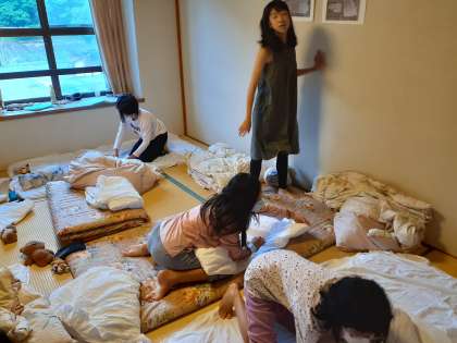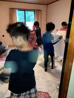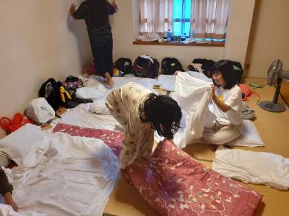 起床の放送前から起き出し、部屋の片付けを始めています。