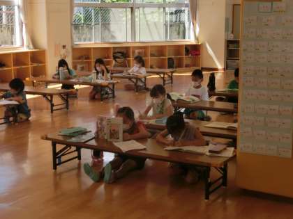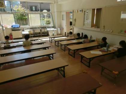 他の学年は、広々した部屋の中で、