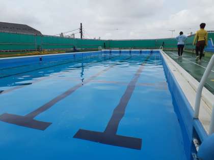 朝晩の空気は、秋めいてきましたが、プールが始まるまえは、気温も上がり、絶好のプール日和です。