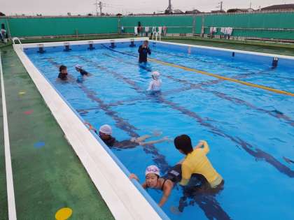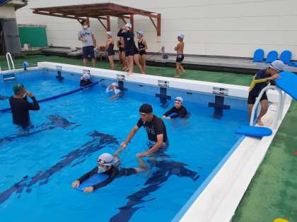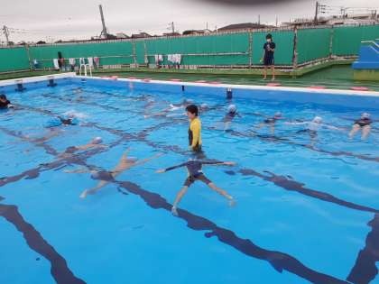 後半は、今までの練習の成果を確かめる検定を受けたり、平泳ぎのキックを正確にしたりと、各自のテーマを追究していました。