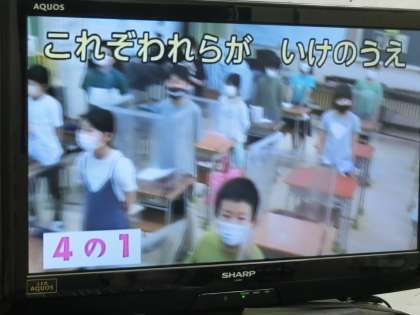 校歌斉唱は、各クラスで撮影した映像を観ながら心の中で歌いました。