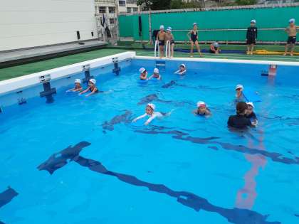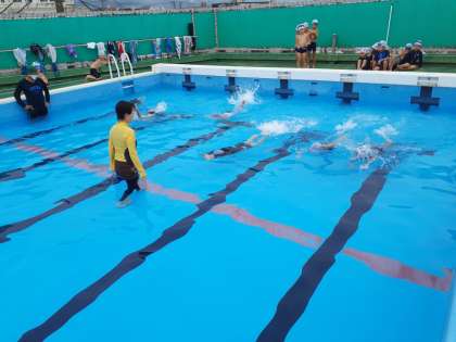 今の泳力を確かめる検定をしたり、泳ぐグループと浮くグループに別れて練習したりと水あそびを楽しんでいました。