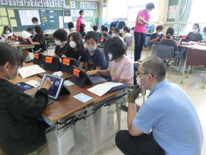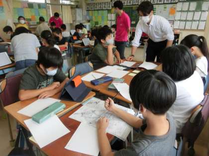 子どもたちのプレゼン作成に、親身になってアドバイスし、