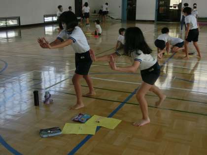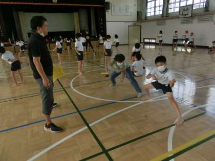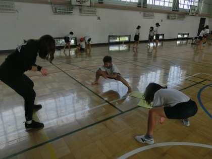 今日は、体育館で、2,3人グループでの動きのチェック。