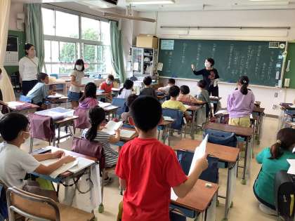 本日は3年2組で本校講師の廣川先生による「ちいちゃんのかげおくり」の師範授業を行いました。