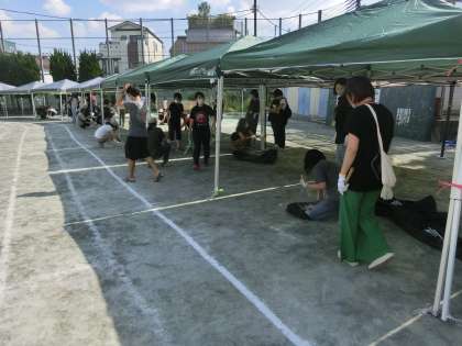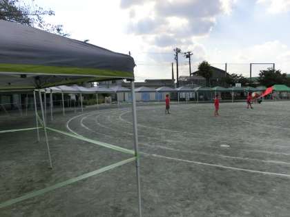 運動会前日準備 保護者の皆さまのおかげでテント全張