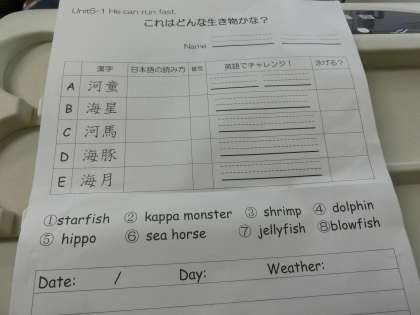 海老、海豚、河豚、河馬、河童、海鼠などの漢字を提示して、