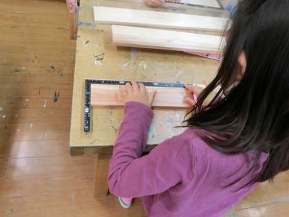 まずは寸法を測り、線を描いてのこぎりで切っていきます。
