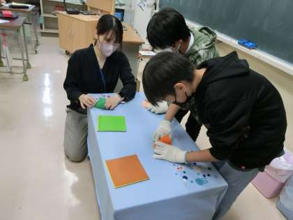 軍手をしながら折り紙を折って感覚の違いを体験したりして、