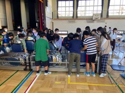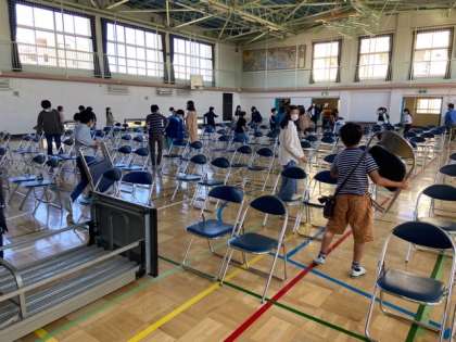 その待合室となる体育館のいす並べを5年生が担当しました。