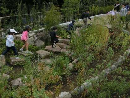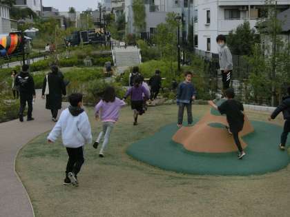 子どもたちが走り回るにちょうどよい広場が併設されています。