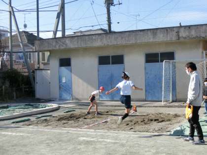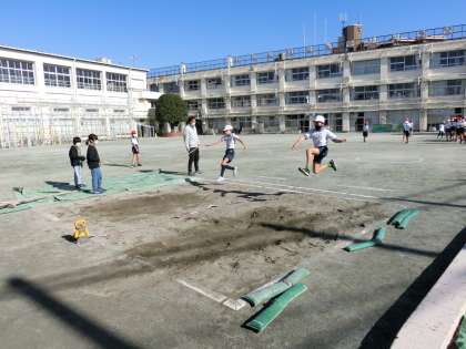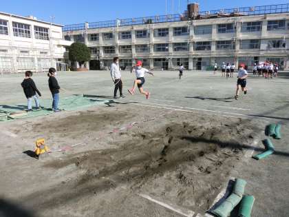 体育集会の後、4年生は走り幅跳びの学習をしていました。