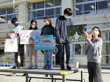 最後に、世田谷児童作品展に出品した児童の作品を紹介しました。