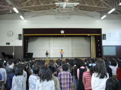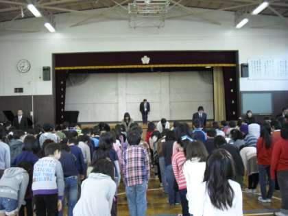 校長先生から、1人1人新しく目標をもちましょうと言うお話と