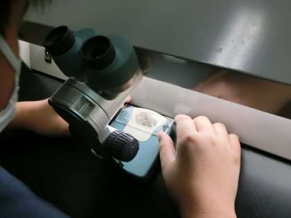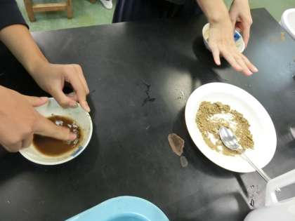 そこで、お米とぎの要領で赤土を洗ってから観察しました。