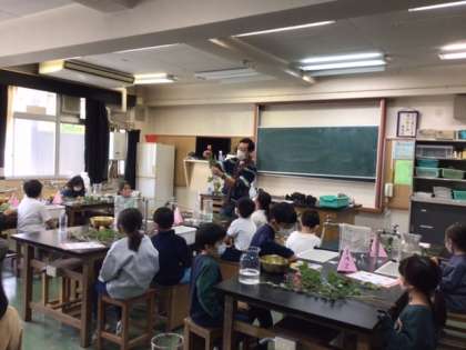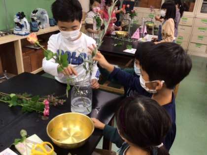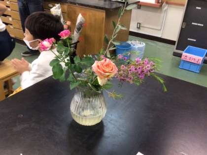 1年生は6年生に手伝ってもらいながら、上手に生ける事ができました。