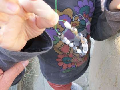 収穫できたジュズダマで飾りを作る子など様々です。