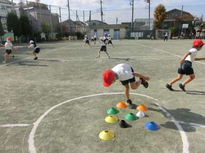 二人組の、シンクロランニングで校庭一面を使っていました。