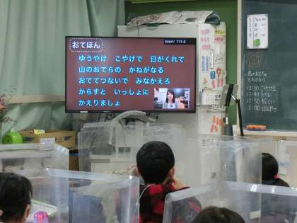 「どんぐりころころ」と「ゆうやけこやけ」を歌いました。