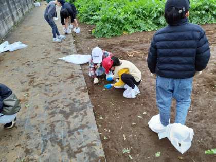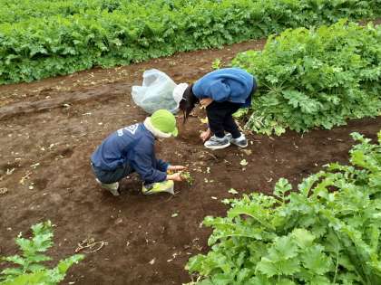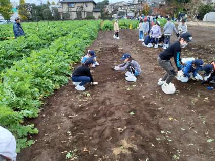 大根抜きを終えた3年生、ワールドカップ、カタール大会のサムライジャパンに負けず、収穫後の片付けに励んでいます。