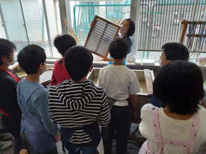 初めに、紙漉き教室の先生から、紙漉きの手順を教えていただきました。